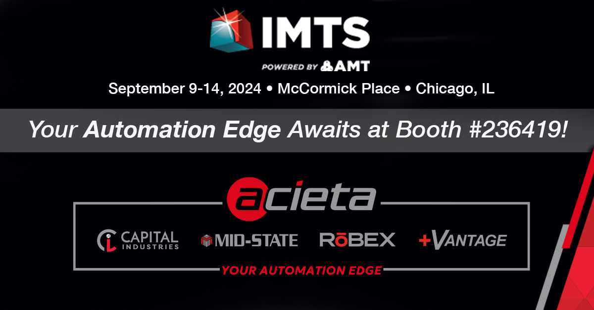 In an era of rapid technological change, it's crucial for manufacturers to adapt and evolve. At IMTS 2024, Acieta is excited to showcase how our combined expertise can transform your operations and position you for success. Join us at Booth #236419 to discover solutions that can help you tackle today's challenges and seize tomorrow's opportunities.